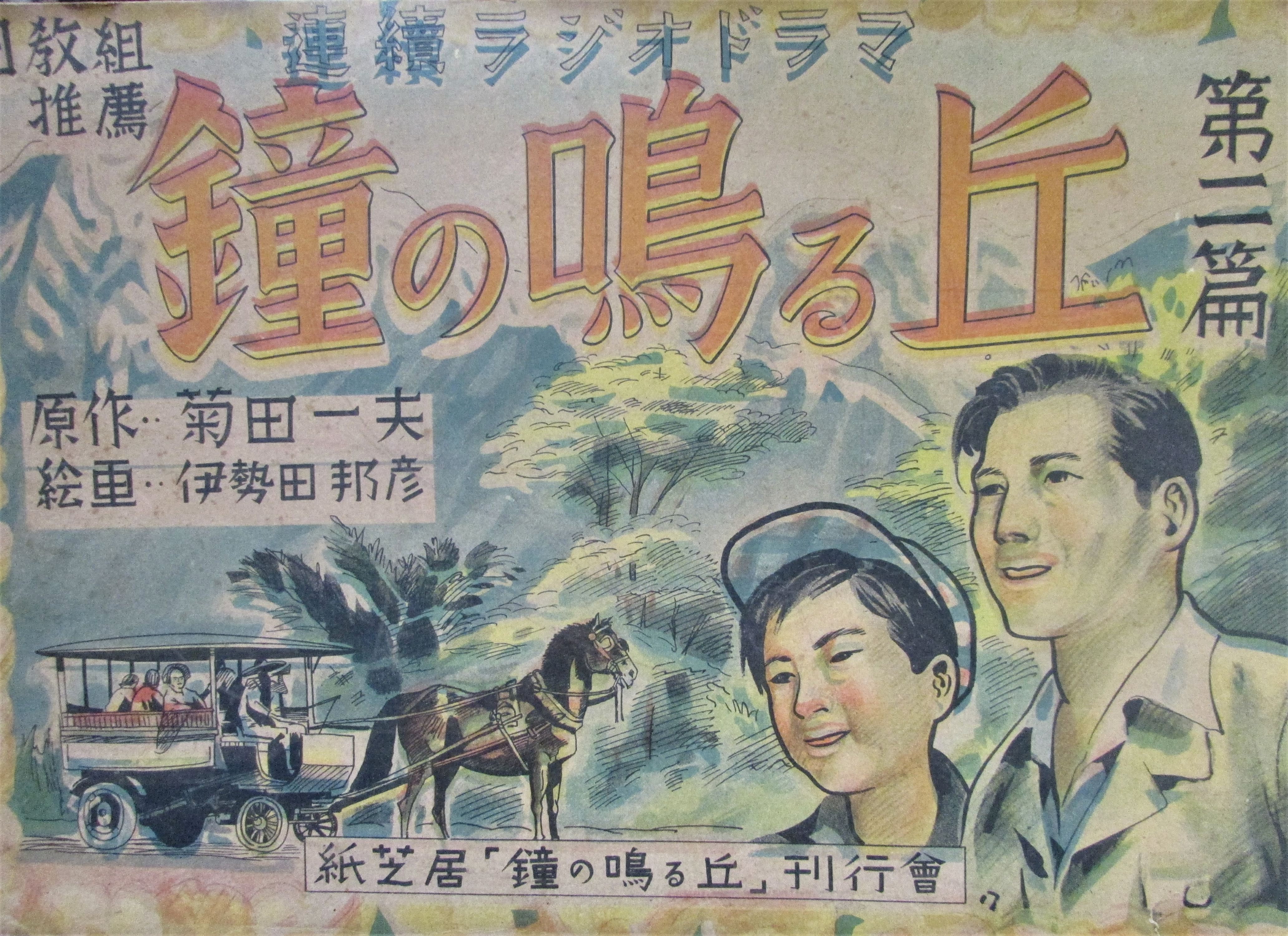 | 116A | 鐘の鳴る丘 第二篇 紙芝居 | 20枚揃い ヤケ濃 | 菊田一夫/原作 伊勢田邦彦/絵画 | 昭23 | 鐘の鳴る丘刊行会 | 売切 | |